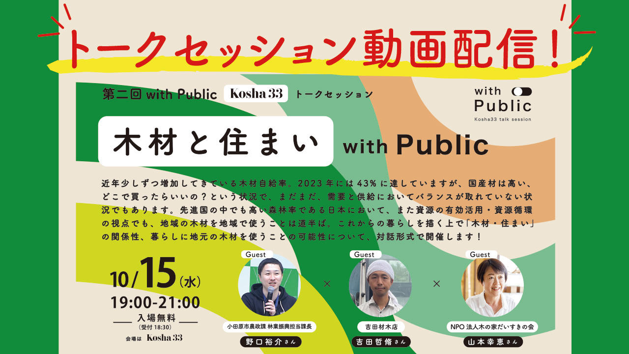 10/15(水)Kosha33トークセッション「with Public|木材と住まい」動画配信!
