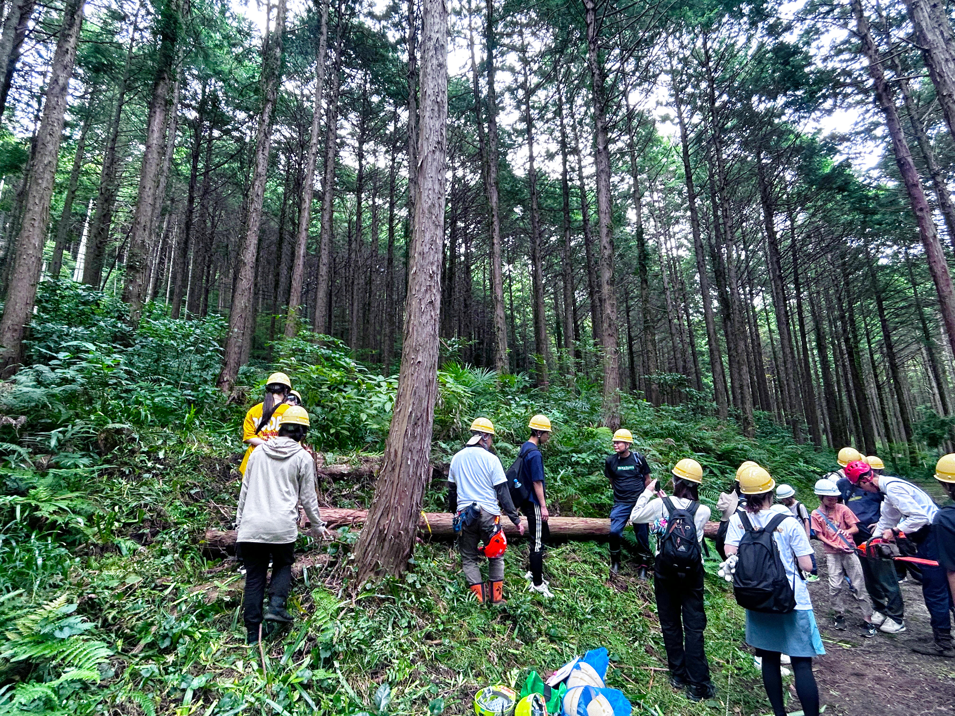 ・伐採場(間伐や枝打ちの必要性、若い木のCO2吸収の重要性を学ぶ。実際の間伐作業を見学、雨天時は中止)![]()
