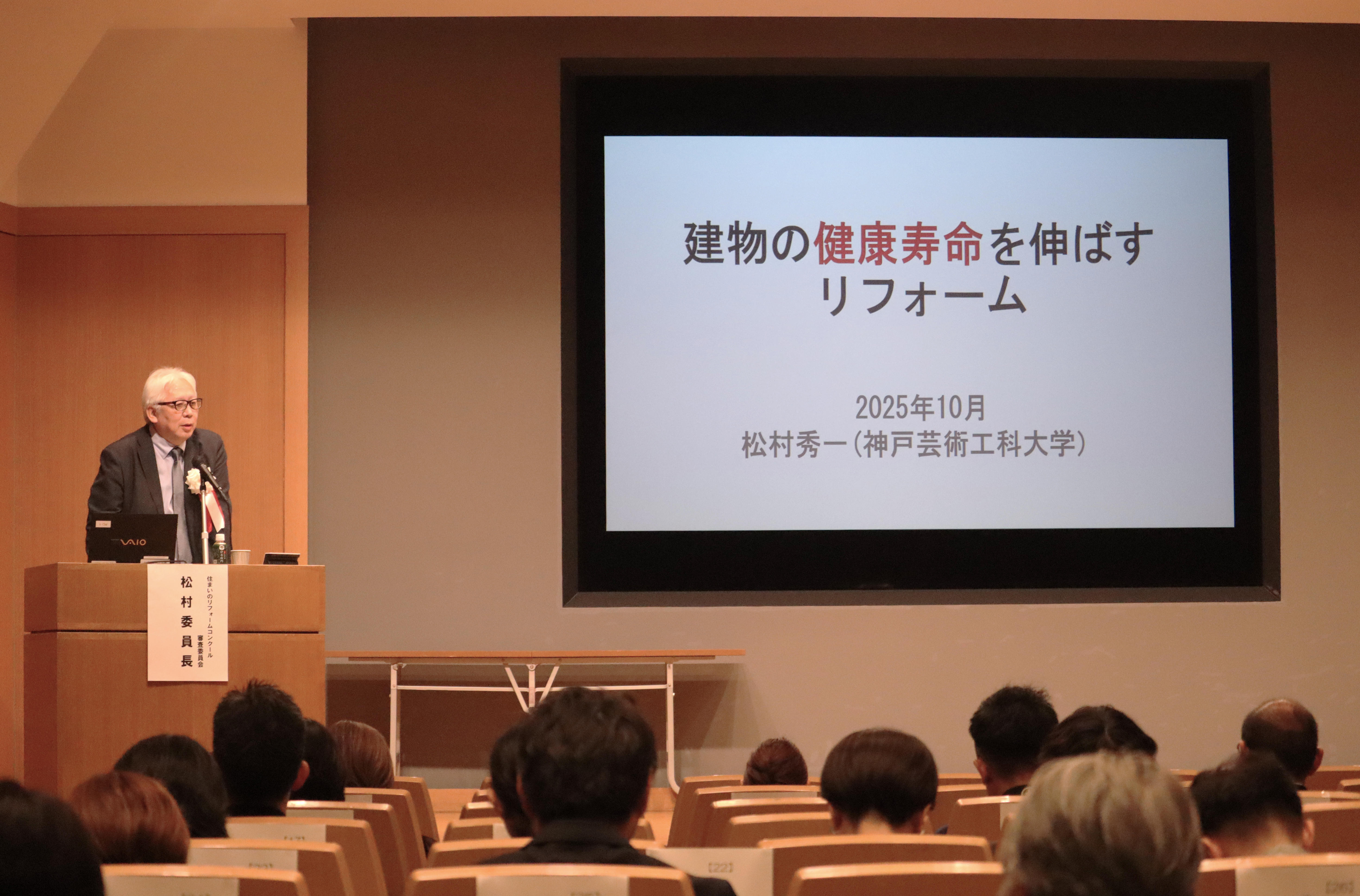 表彰式の後には、本コンクール審査委員長の松村秀一氏(神戸芸術工科大学 学長)による「建物の健康寿命を伸ばすリフォーム」と題した特別講演会。